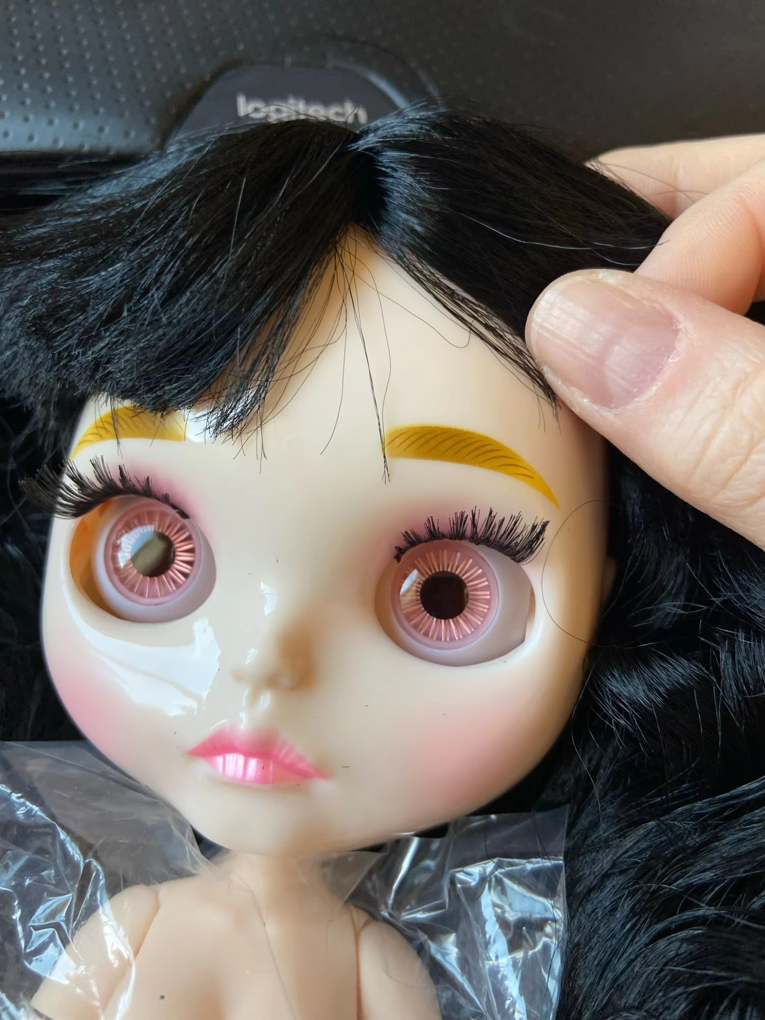 Hair: Black, soft, handmade (bangs or no-bangs option)