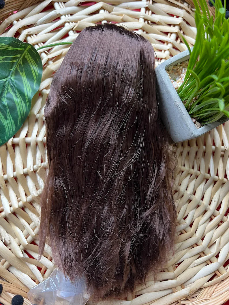 Hair: Handmade, premium-quality soft and silky brown hair with bangs